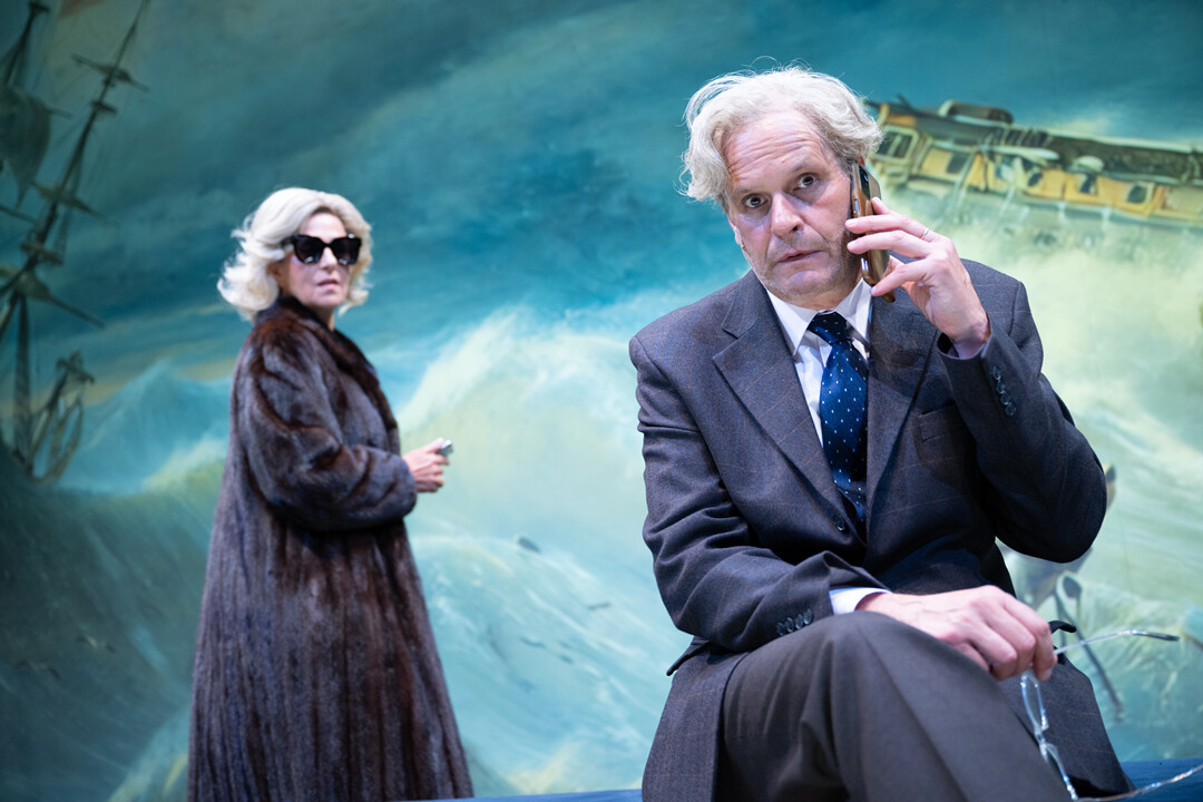 Reinhard Mahlberg (Erlkönig), Marietta Meguid (Intendantin), Sebastian Röhrle (Rex), Vernesa Berbo (Tomer) // EINE RUNDE SACHE, Foto: Björn Klein